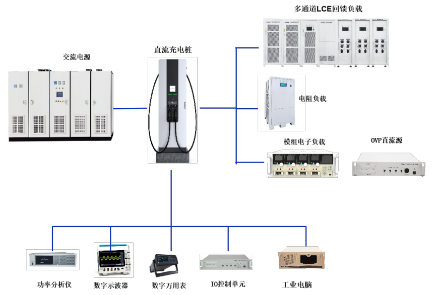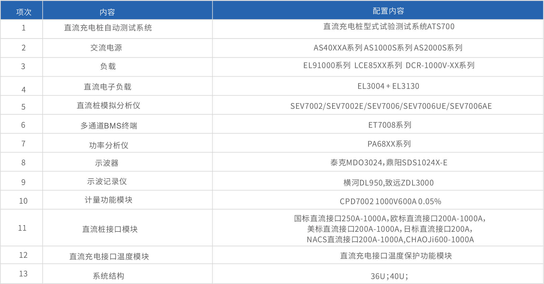 交直流充電樁型式試驗測試系統(tǒng)ATS700,主要應(yīng)用于直流充電樁型式試驗測試,可選配不同標準接口,支持國標、CHAOJi、歐標、美標、NACS等標準直流充電樁。用戶可以根據(jù)實際需求,選配交流電源模塊、直流樁模擬分析儀、功率分析儀、數(shù)字示波器、計量模塊、直流回饋負載、電阻負載等功能模塊,其開放性功能設(shè)計可以滿足第三方檢測機構(gòu),研發(fā)實驗室對充電樁的型式試驗測試和報告輸出。