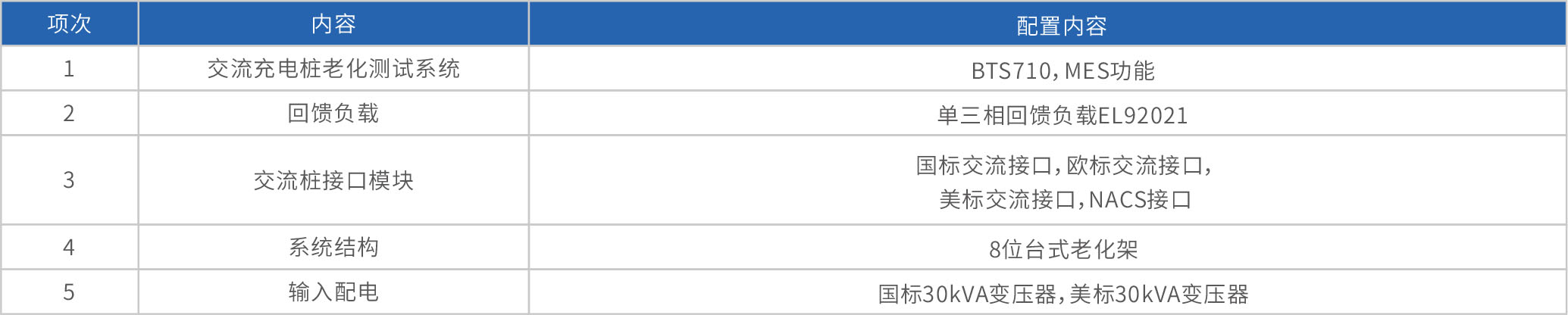 交流充電樁臺架式常溫老化系統(tǒng)BTS710,主要應(yīng)用于交流充電樁老化測試等,可選配不同標(biāo)準(zhǔn)接口,支持國標(biāo)、歐標(biāo)、美標(biāo)等標(biāo)準(zhǔn)交流充電樁。為離線常溫老化應(yīng)用設(shè)計,可以滿足客制化生產(chǎn)測試。