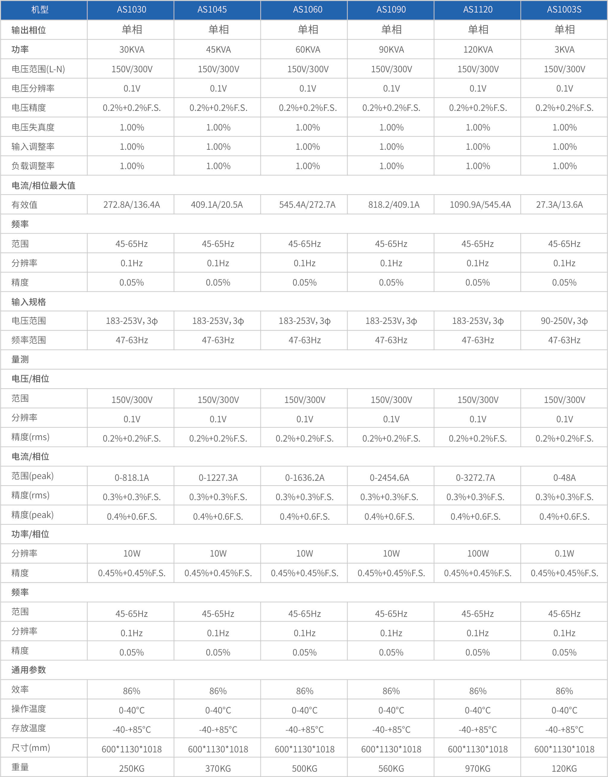 程控交流電源-AS1000/AS1000S系列,是一款高性價比 、高穩(wěn)定性的交流變頻電源,采用數(shù)字化技術、控制精確可以輸出非常純凈、諧波成分小的正弦交流波形。本款電源的電壓輸出范圍0-300V,頻率范圍寬,適合作為工頻輸入的電子產(chǎn)品測試輸入源。全面的保護機制讓用戶使用起來更加安全。可選配RS232或RS485通訊接口,讓本產(chǎn)品可整合用于各種測試系統(tǒng)。