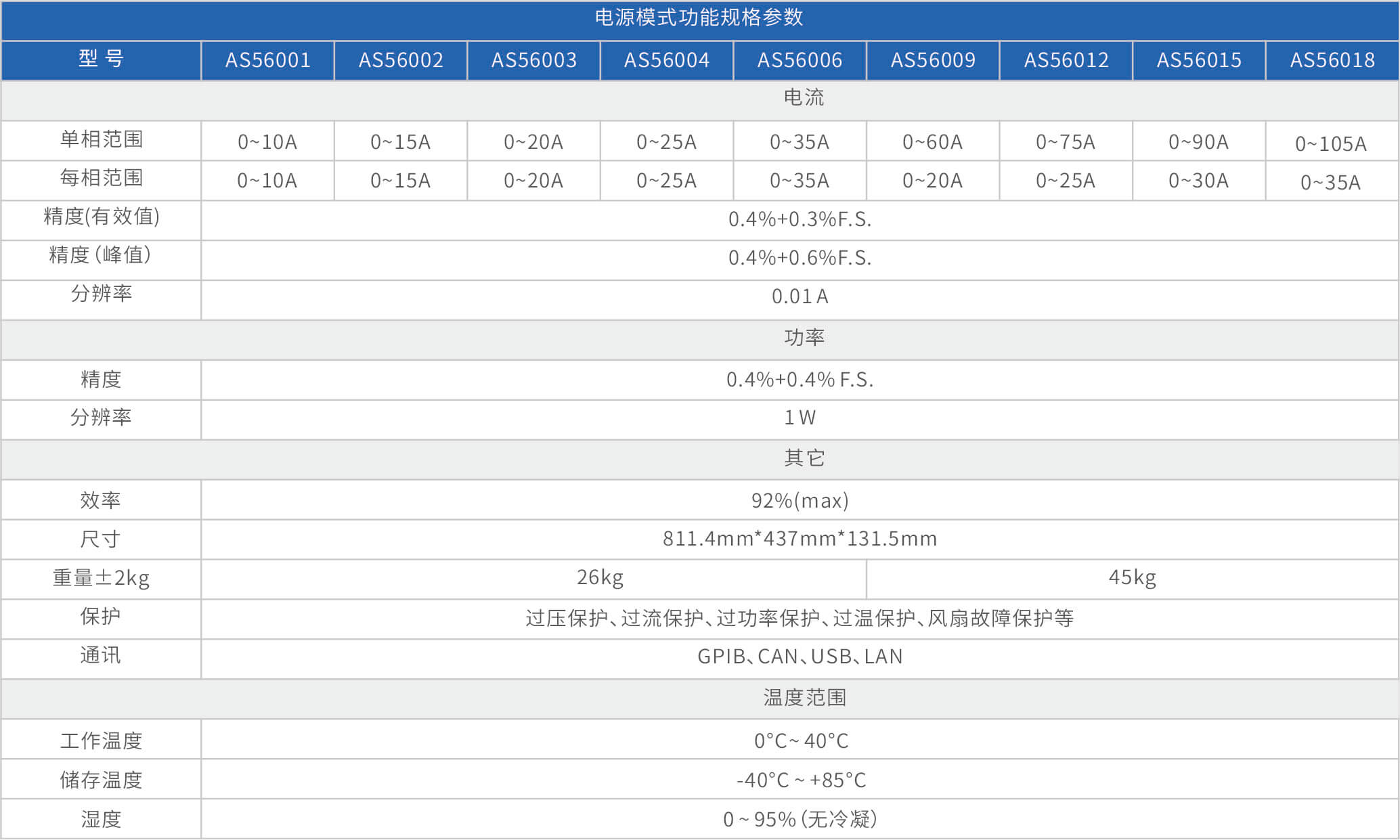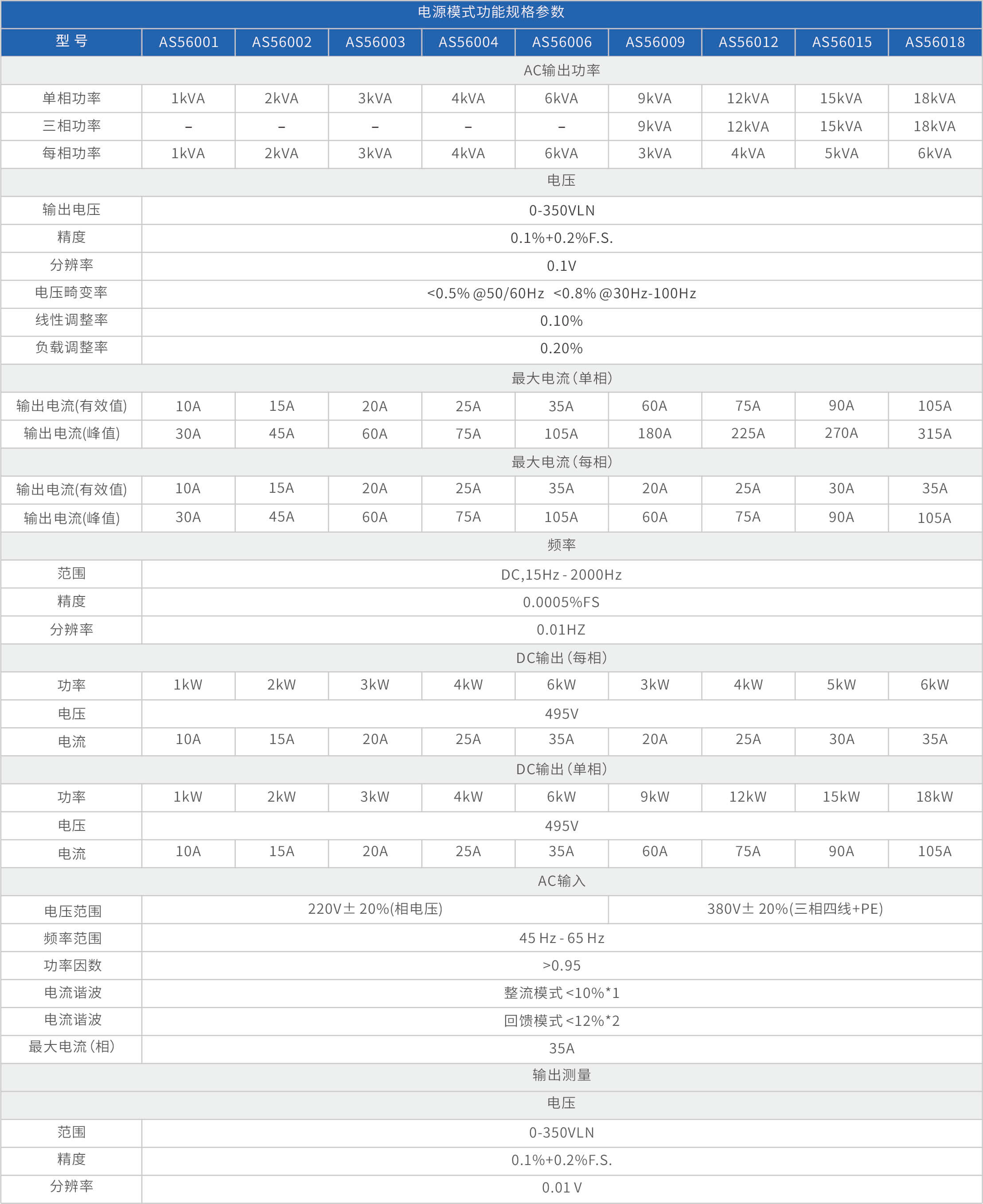 AS56000系列交流電源可選擇多種控制方式,支持數(shù)字RS232/LAN/GPIB/CAN通訊接口,內(nèi)置波形編緝功能,靈活的單/三相操作模式,是一款功能豐富、性能優(yōu)異、適用廣泛的交流電源。