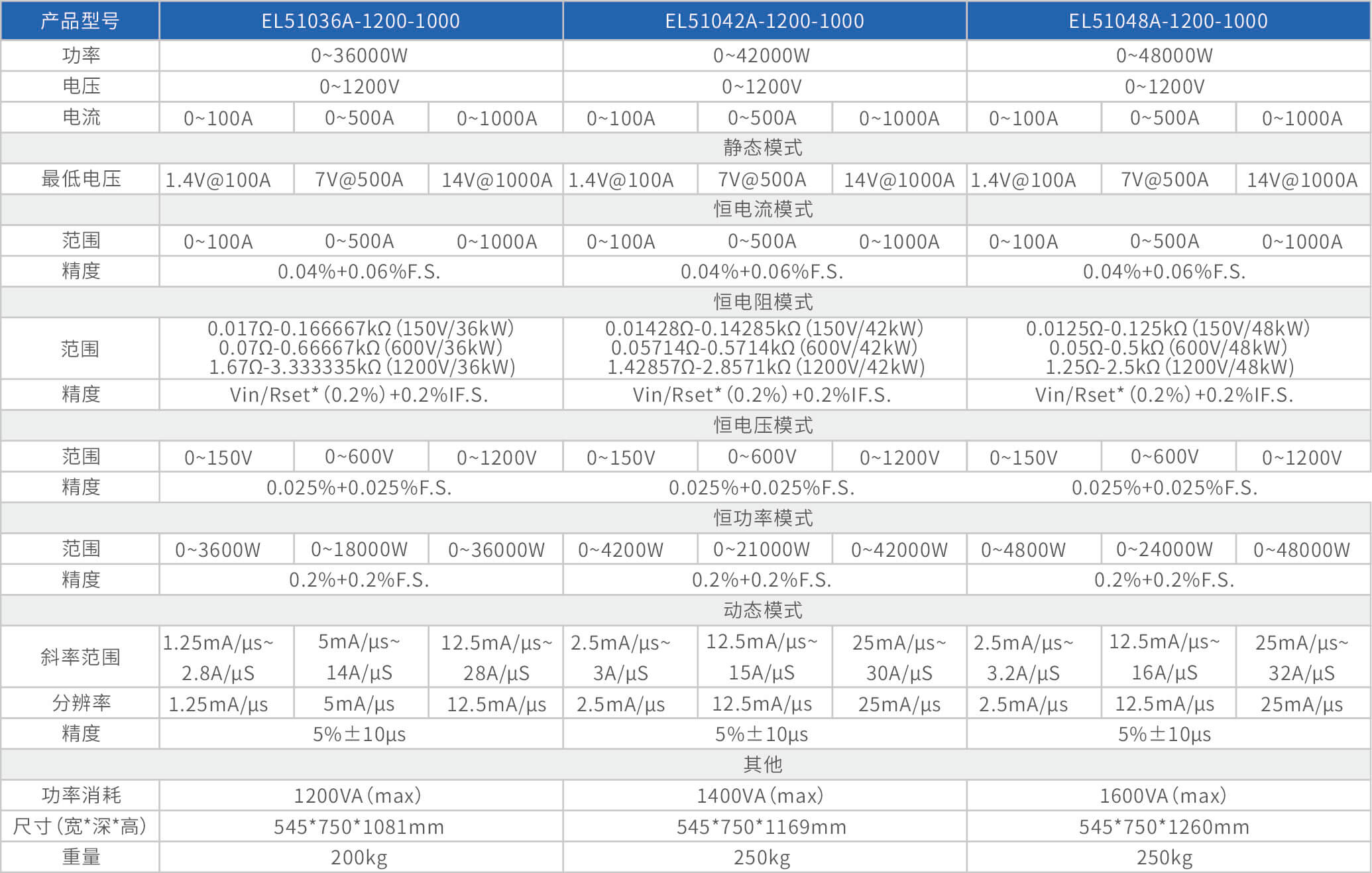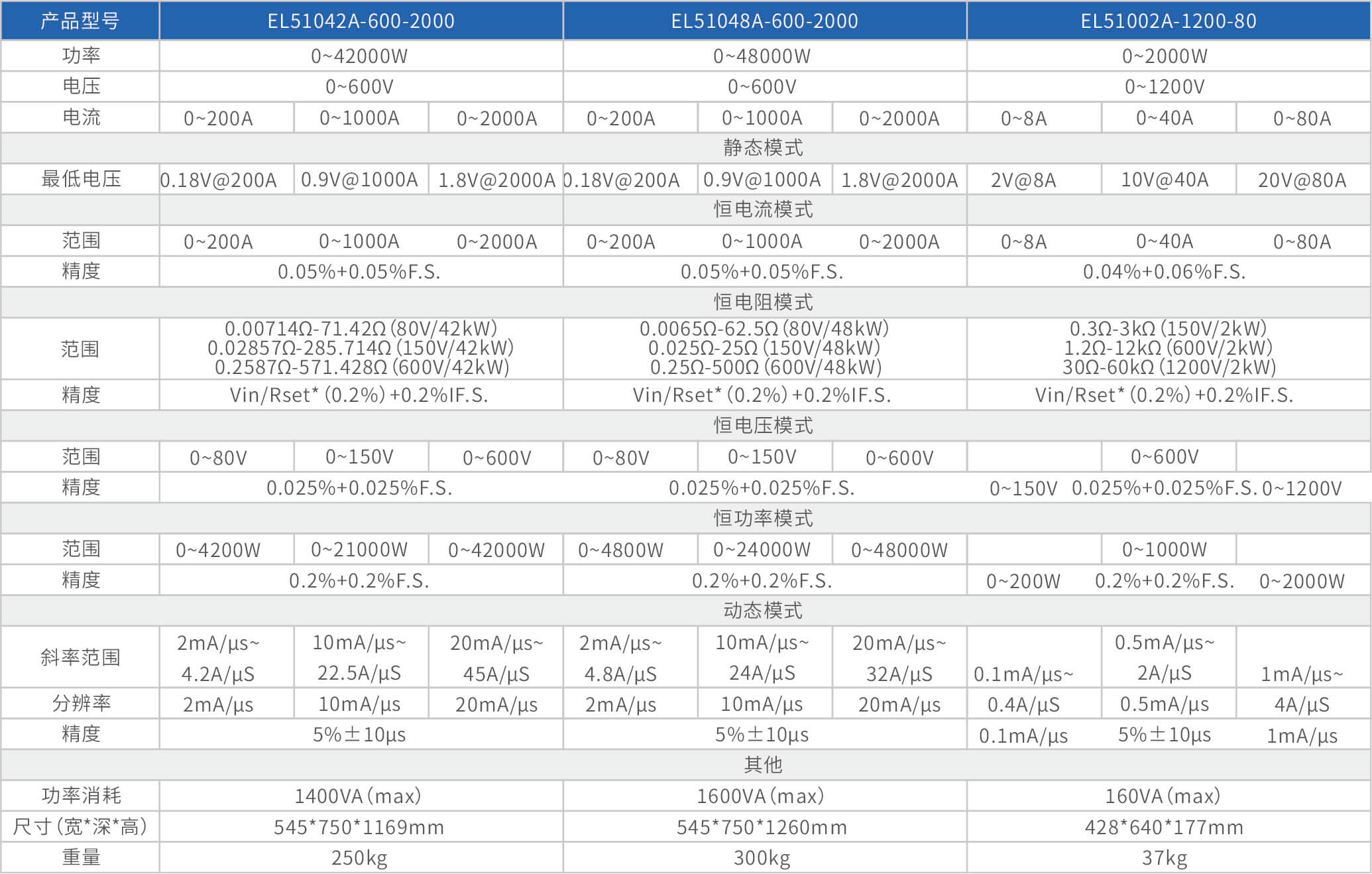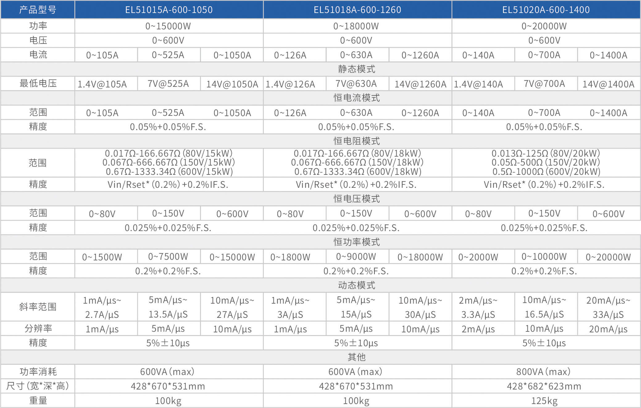 400-800-6892高精度電子負(fù)載EL51000A系列,有150V、600V、1200V三種電壓范圍,功率范圍由2kW至48kW,單一臺(tái)的最大電流可達(dá)2000A;通過(guò)并聯(lián)擴(kuò)展,最大功率更可達(dá)480kW。EL51000A系列負(fù)載具有高功率密度、高控制和測(cè)量精度、高性價(jià)的特點(diǎn);同時(shí)本系列負(fù)載具備同步動(dòng)態(tài),并聯(lián)擴(kuò)展等功能,以及瞬間提供三倍額定功率功能,支持恒電壓CV、恒電流CC、恒電阻CR、恒功率CP四種傳統(tǒng)靜態(tài)加載模式,以及CV+ CC、CR+CC、CV+ CR三種復(fù)合加載模式。