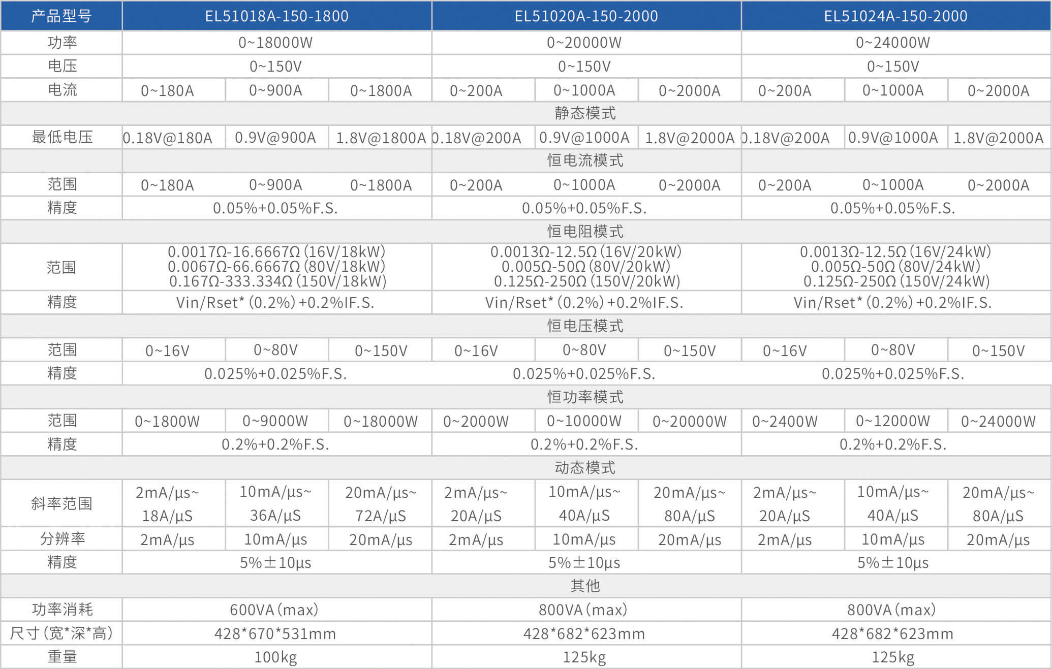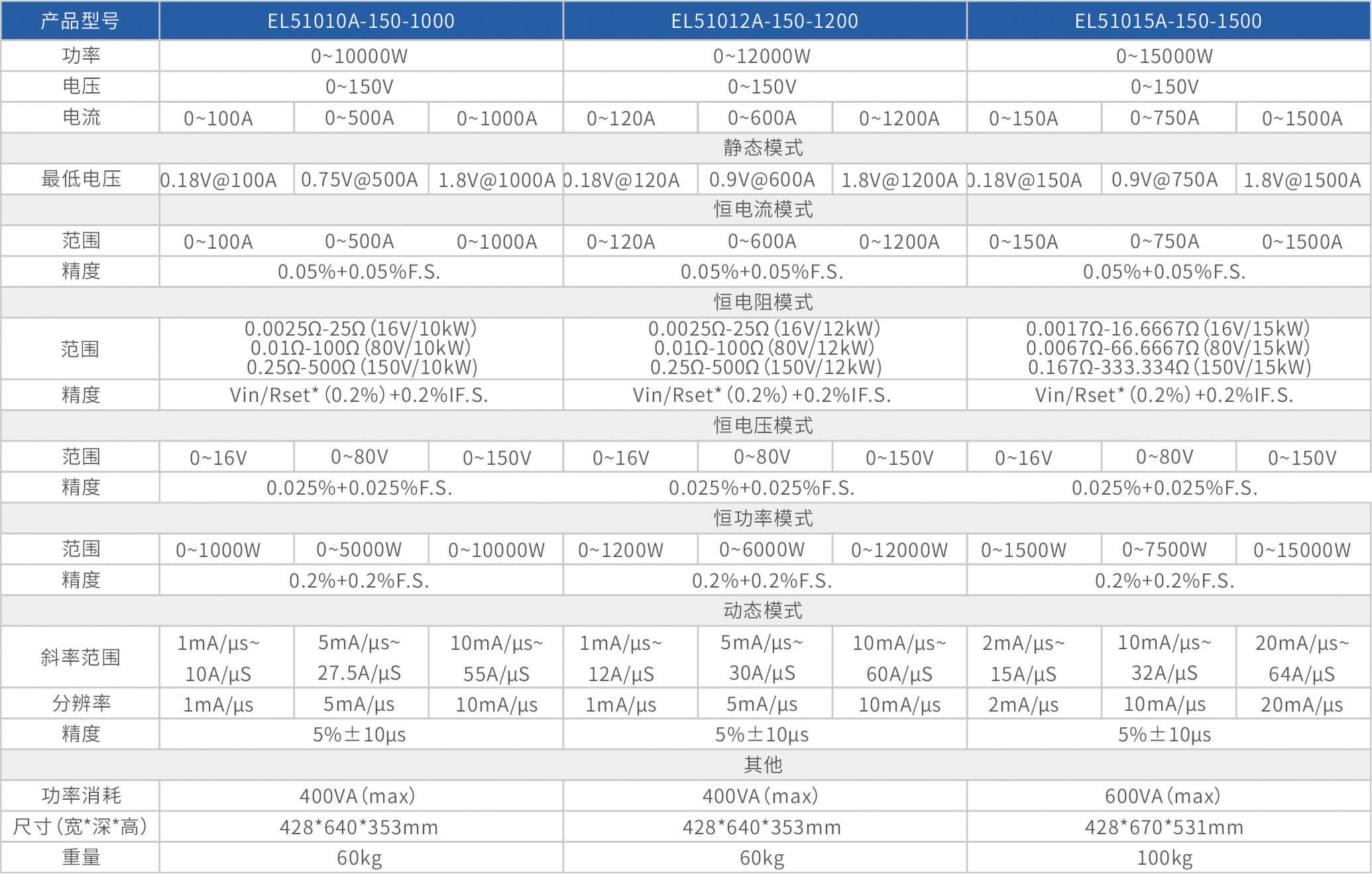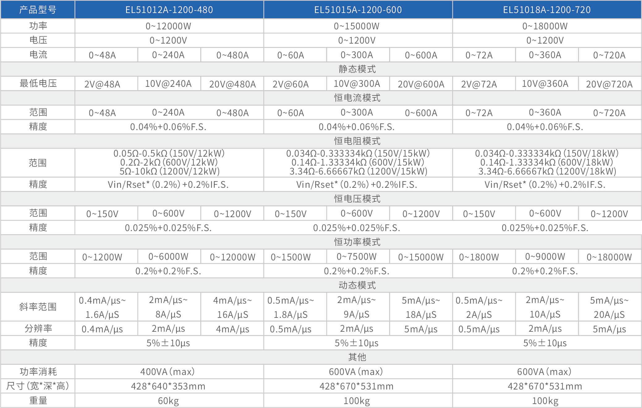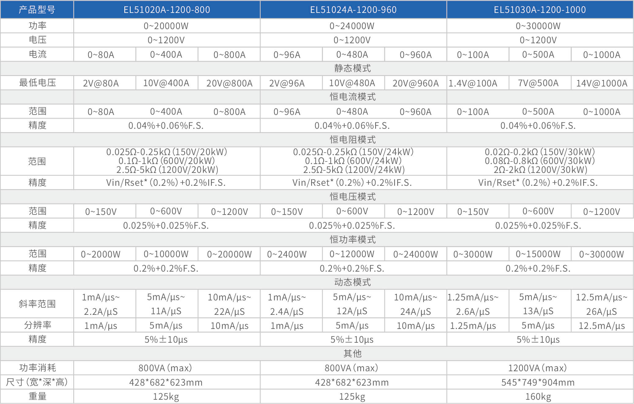 400-800-6892高精度電子負(fù)載EL51000A系列,有150V、600V、1200V三種電壓范圍,功率范圍由2kW至48kW,單一臺(tái)的最大電流可達(dá)2000A;通過(guò)并聯(lián)擴(kuò)展,最大功率更可達(dá)480kW。EL51000A系列負(fù)載具有高功率密度、高控制和測(cè)量精度、高性價(jià)的特點(diǎn);同時(shí)本系列負(fù)載具備同步動(dòng)態(tài),并聯(lián)擴(kuò)展等功能,以及瞬間提供三倍額定功率功能,支持恒電壓CV、恒電流CC、恒電阻CR、恒功率CP四種傳統(tǒng)靜態(tài)加載模式,以及CV+ CC、CR+CC、CV+ CR三種復(fù)合加載模式。