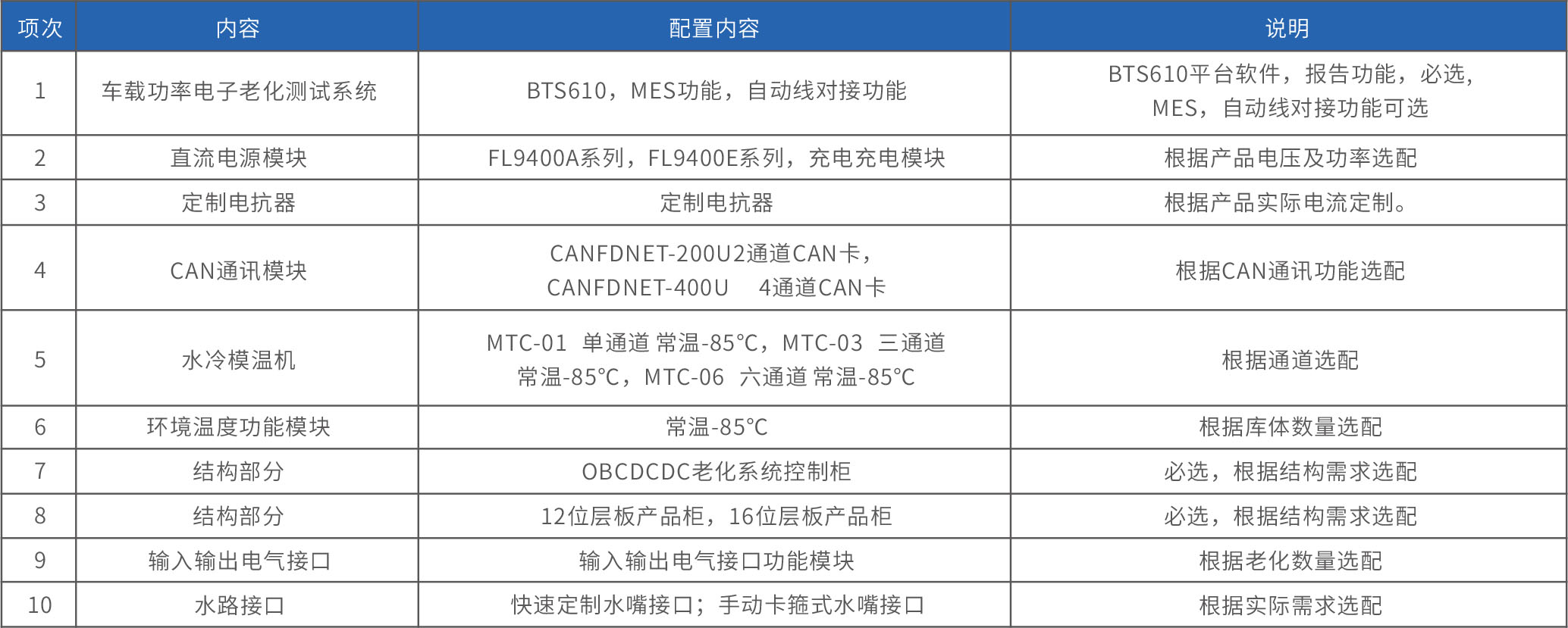 電機驅(qū)動器MCU層板式環(huán)溫老化系統(tǒng)BTS610, 集成高壓直流電源模塊,使用電抗器無功老化,節(jié)約老化成本。每個產(chǎn)品配置獨立旋變和通訊功能模塊,支持一對一通訊控制,真實還原實際工作場景老化。支持環(huán)境溫度、冷媒溫度、冷媒流量、冷媒壓力等參數(shù)客戶自定義,滿足不同用戶老化需求,覆蓋范圍廣。老化系統(tǒng)支持數(shù)據(jù)一對一讀取和保存,標準化MES功能對接模塊,數(shù)據(jù)可溯源。應(yīng)用于MCU產(chǎn)品研發(fā)耐久,生產(chǎn)老化測試。