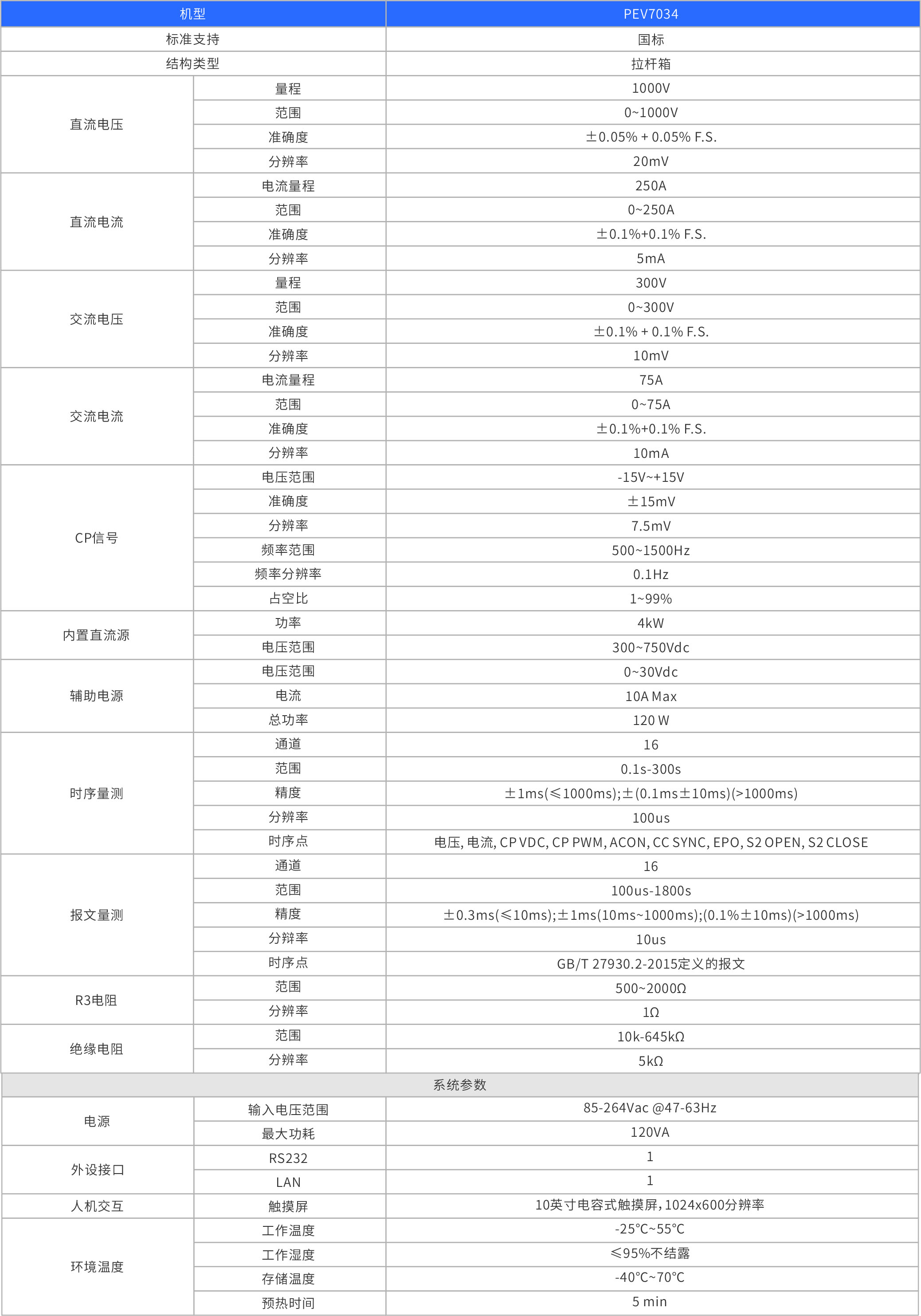 PEV7034內(nèi)置控制交直流充電控制導(dǎo)引線路模塊、直流功率模塊、交直流電壓電壓采樣模塊、充電異常模擬模塊、時(shí)序量測(cè)模塊、通訊控制模塊、觸屏顯示模塊等。