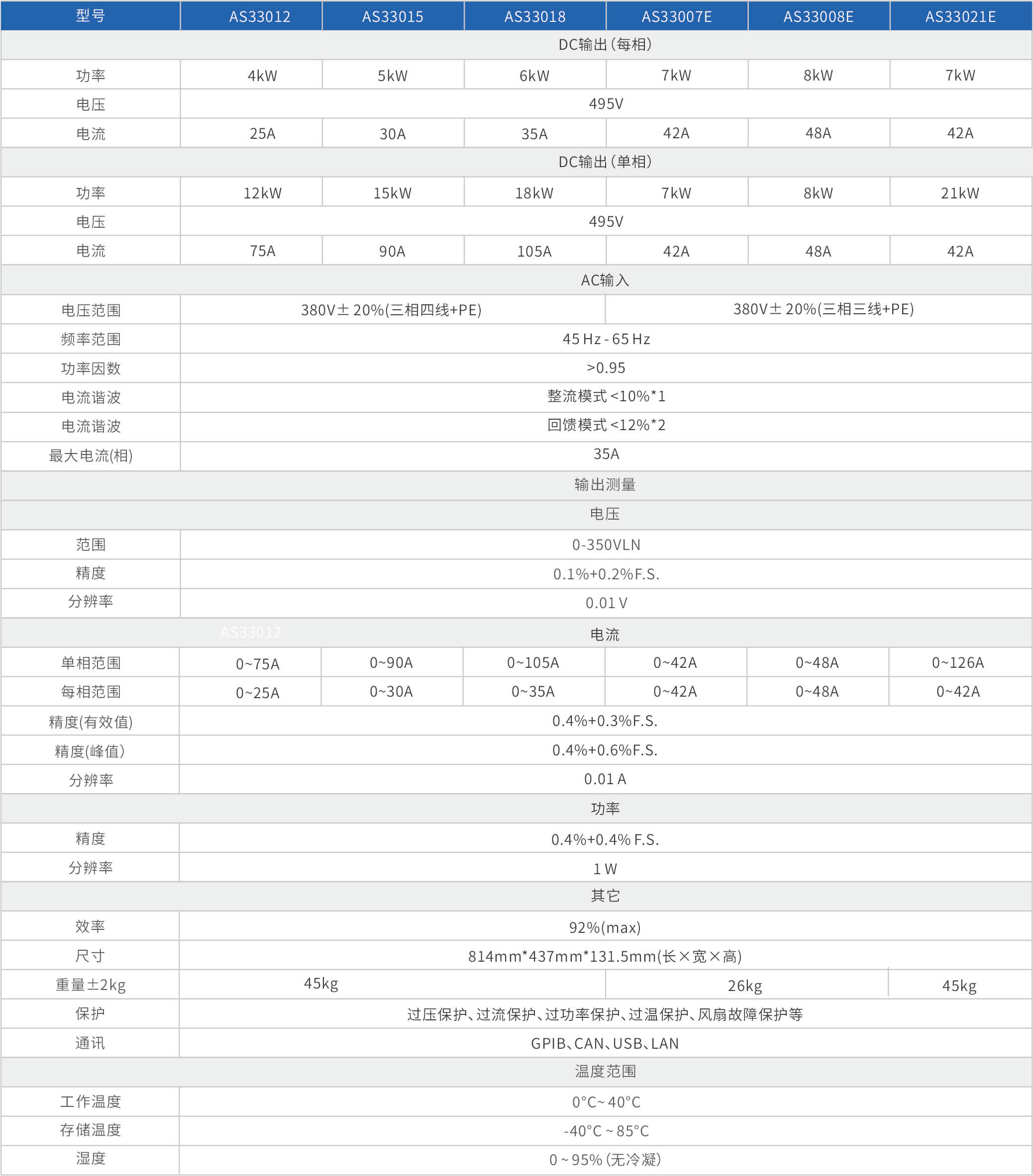 AS33000系列交流電源是一款高功率密度、高精度、高性能的產(chǎn)品,可作為穩(wěn)定的供電電源??蛇x擇多種控制方式,支持?jǐn)?shù)字RS232/LAN/GPIB/CAN 通訊接口,內(nèi)置波形編緝功能,靈活的單/三相操作模式,是一款功能豐富、性能優(yōu)異、適用廣泛的交流電源。