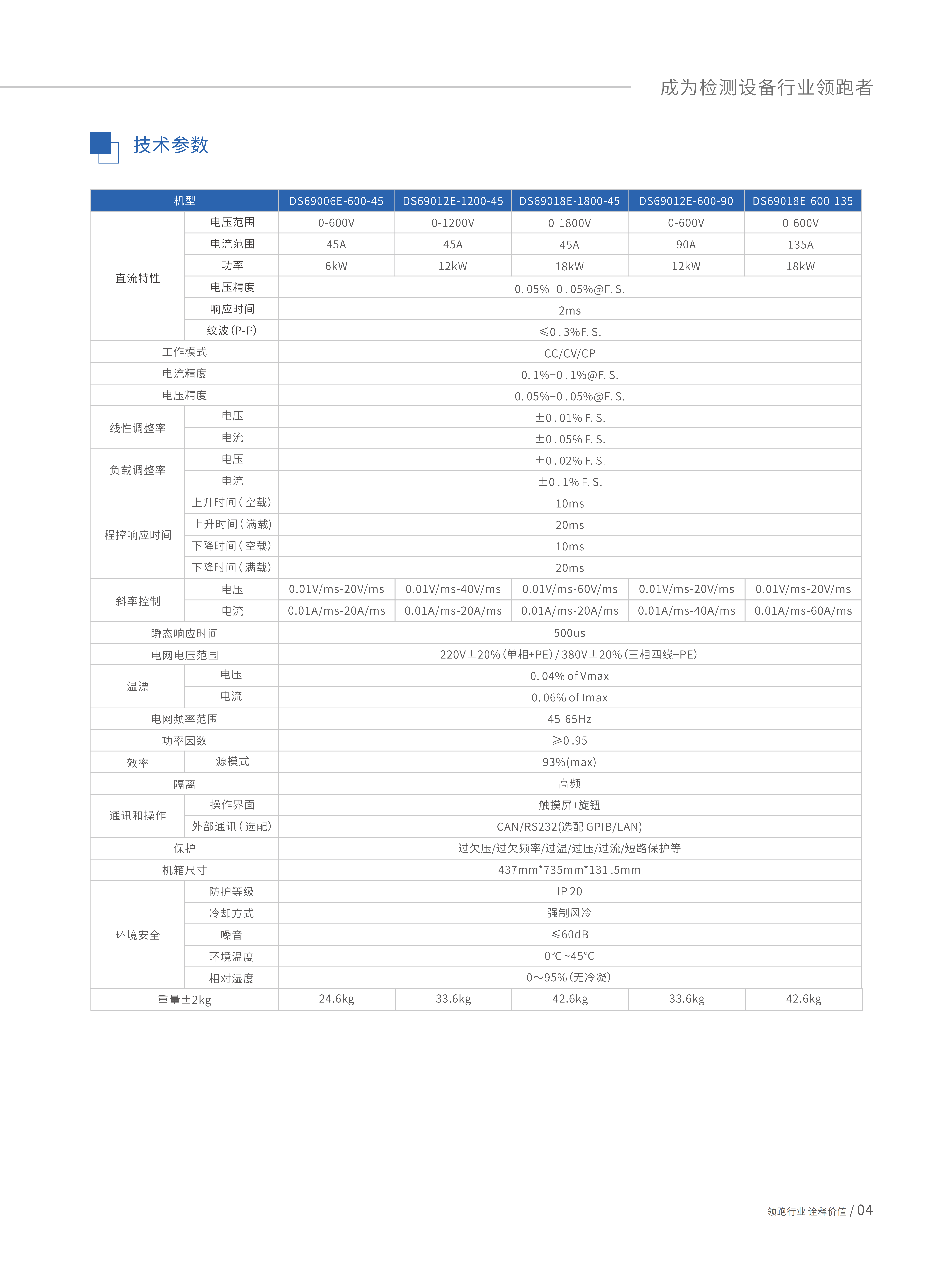 DS69000系列程控直流電源是一款具備輸出高精度電壓、電流的電源產(chǎn)品,具備高精度測量功能。該系列可最大限度滿足高壓小電流、低壓大電流等不同產(chǎn)品的測試需求。